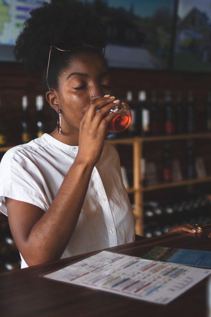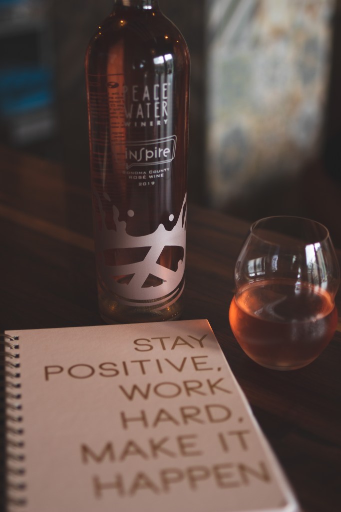 Now fast forward to 2020 and now I am frequently capturing moments with my photography business and looking for a venue with great aesthetics, pops of color and something new for my audience to visualize. And right then it hits me ” BOOM” check your favorites list. I scroll down and I see Peace Water Winery. I remember the ambiance, the customer service and it feels like home. I reach out and they were amazing and helpful and recommend the Fishers location. My friend Brittany agrees to be my muse alongside our personal chosen wine of the week which was the Inspire Róse.